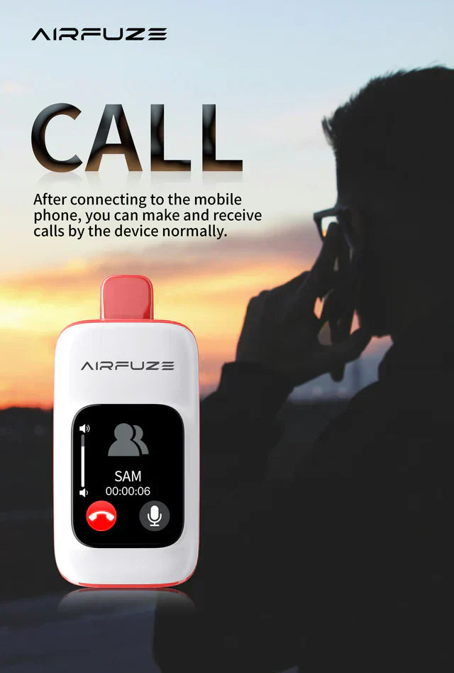 Introducing the AIRFUZE Smart 30K Puff Disposable Vape—the pioneering smart vaping device that combines advanced technology and exceptional convenience. This groundbreaking device offers an impressive 30,000 puff capacity and integrates smartphone connectivity, music playback, and smartwatch-like features, setting a new standard in the vaping world.